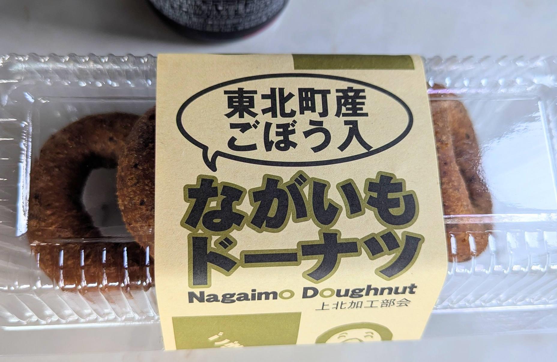 車中泊場所ではほぼ必ず買い物をしますが、よくドーナッツを買います。ながいもドーナッツで、ニンジン入りとごぼう入りの2種類です。