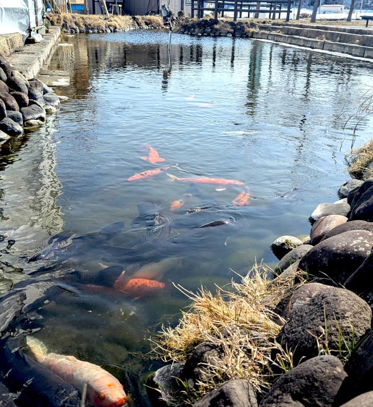 池に鯉もいて、道の駅で鯉のエサも売っています。最近、足湯もできて最高ですね。